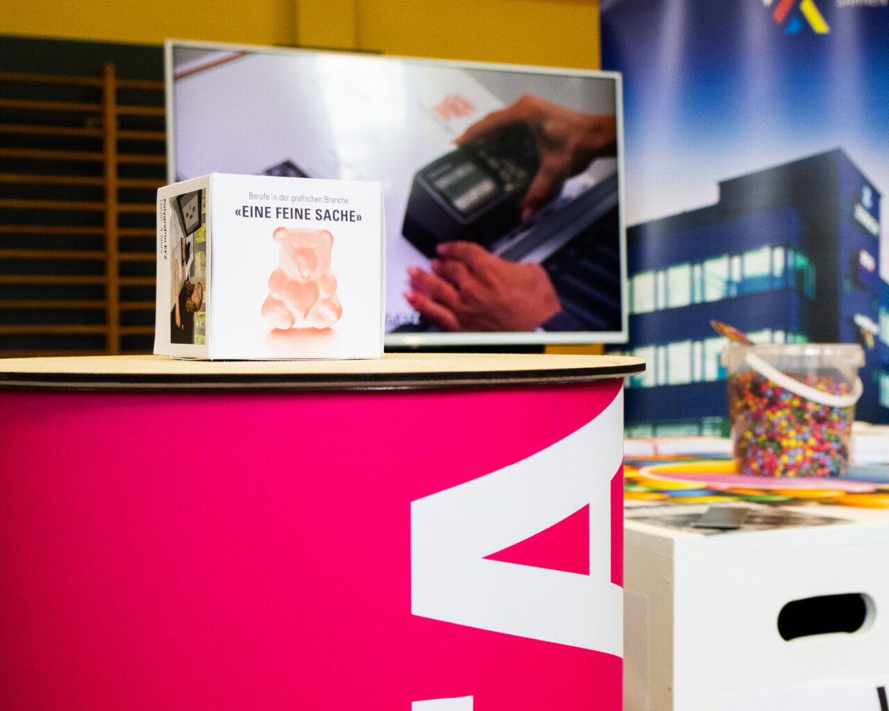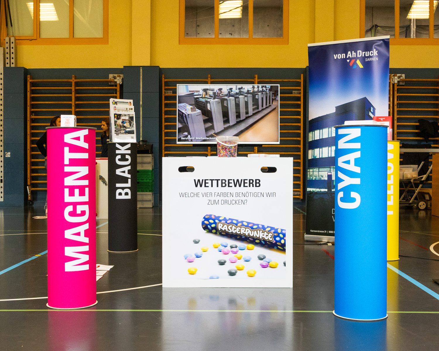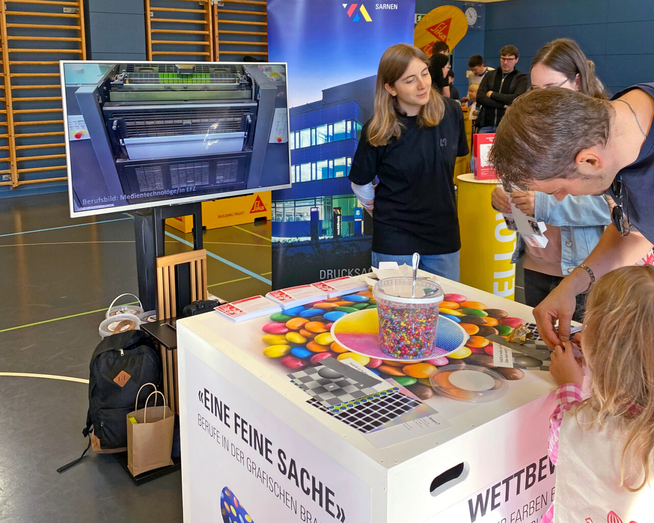 Am 21. September durften Schüler/innen im Kindergarten- und Primarschulalter die Berufsausstellung «Bogs Trail» in Sarnen besuchen und auf spielerische Art Lehrberufe kennenlernen. Auch wir waren mit den Berufen Polygraf/in, Medientechnologe/technologin und Druckausrüster/in dabei und zeigten einen Einblick in die interessante Welt der grafischen Branche.